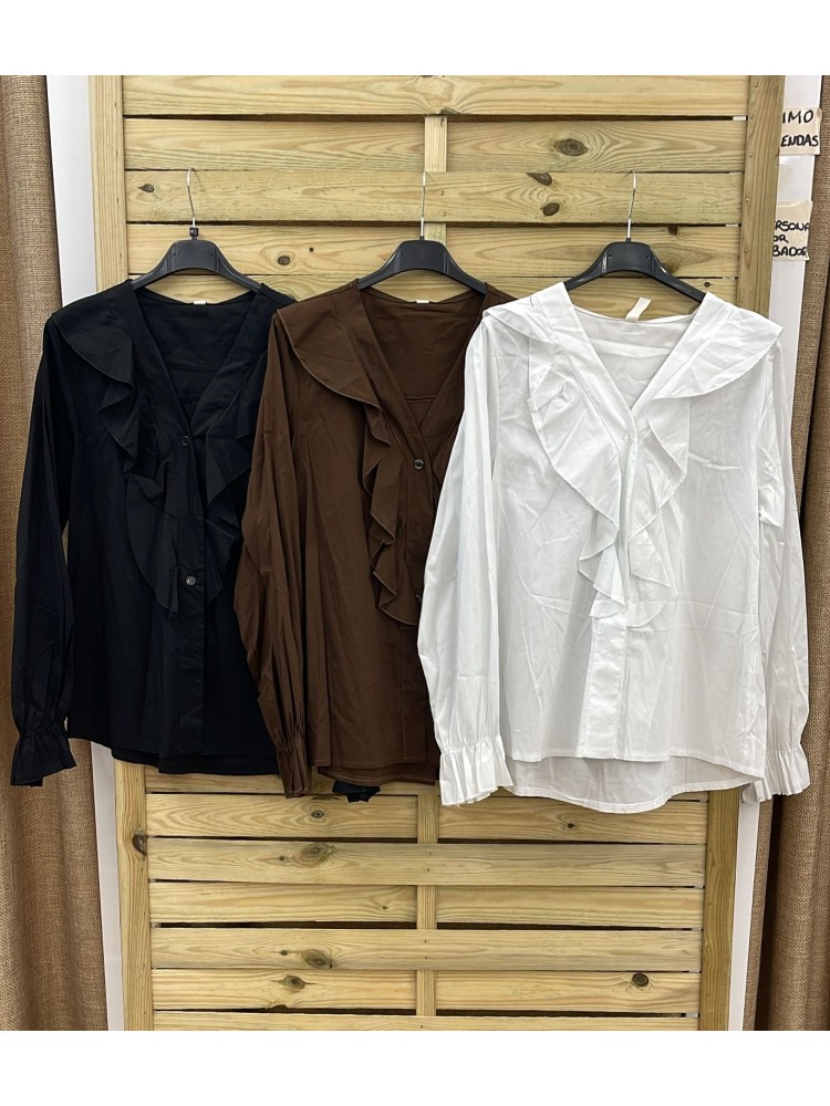 Camisa abotonada con escote en pico y doble volante vertical