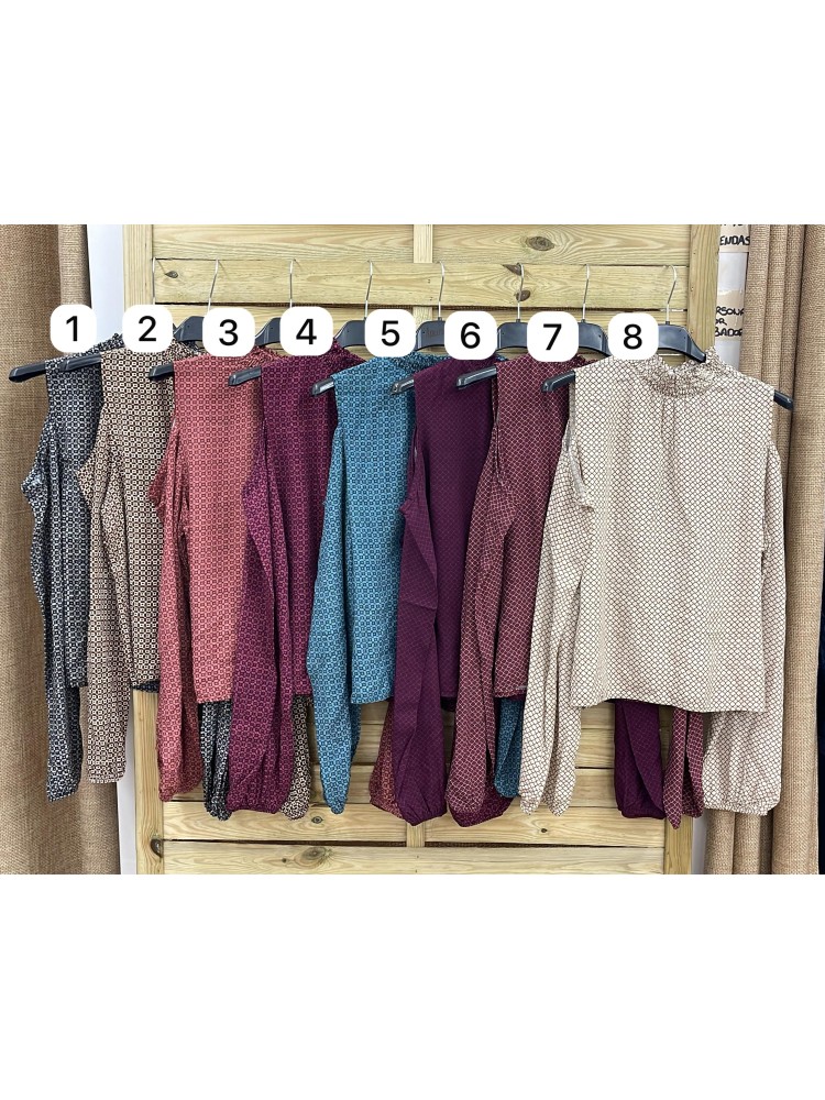 Camisa estampada con hombros descubiertos y frunce en cuello
