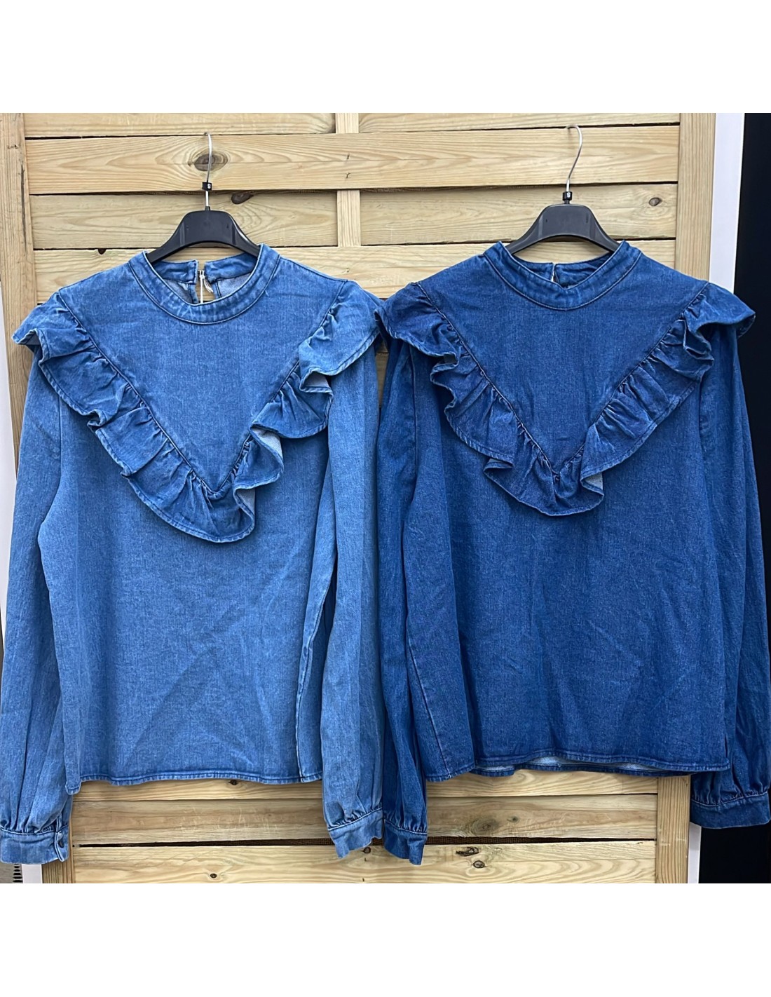 Camisa vaquera con volante delantero en pico
