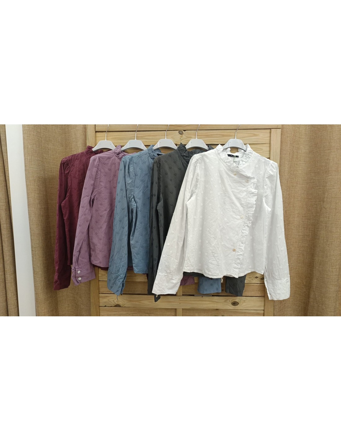 Camisa lisa florecitas cruzada con volantito
