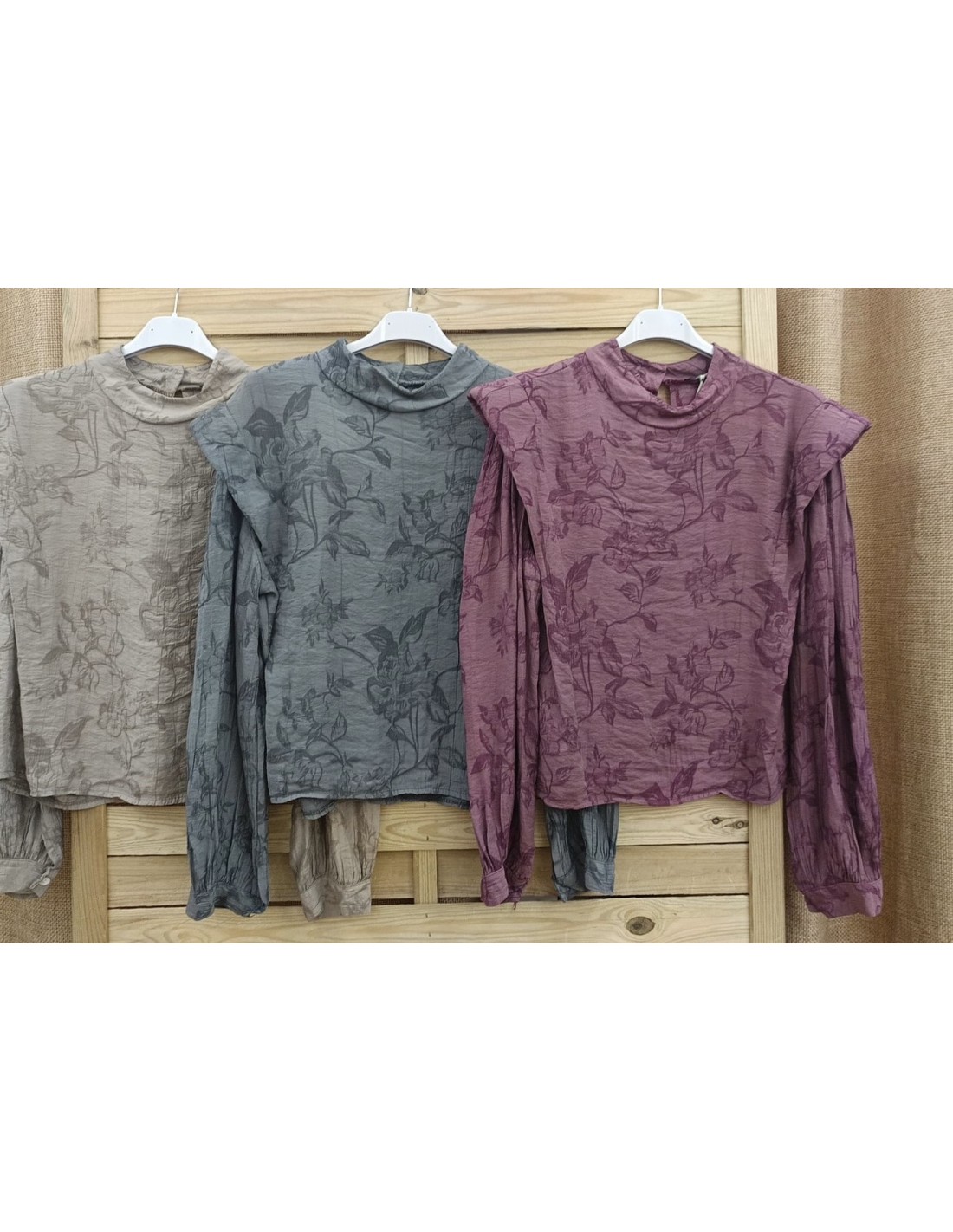 Camisa capita en hombros lisa de flores bordadas