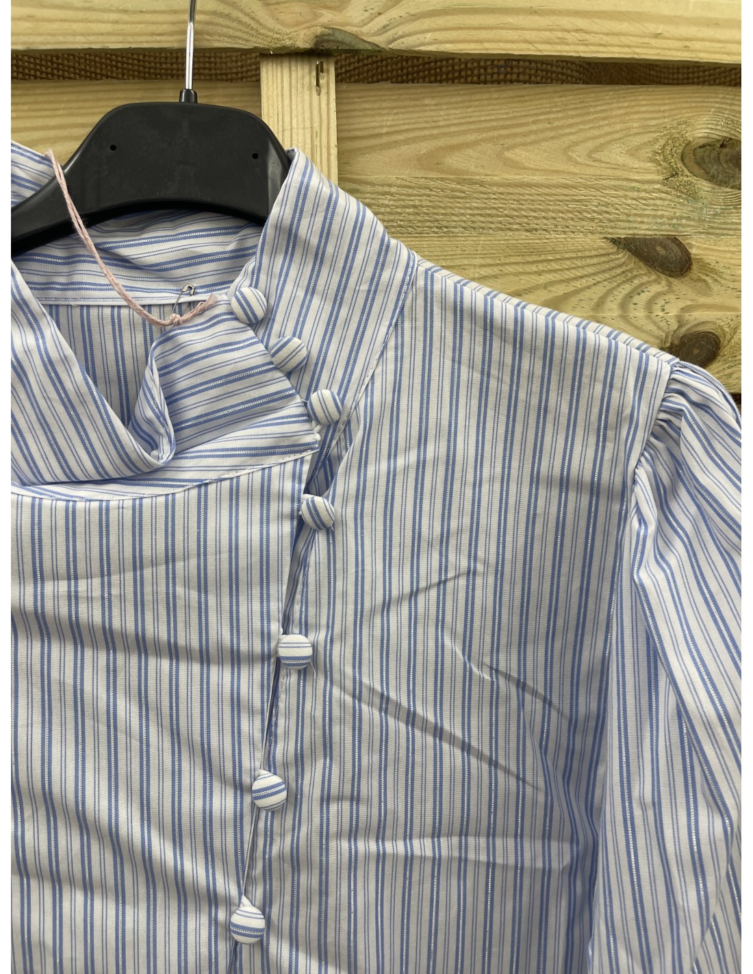 Camisa de rayas con cuello medio y botones en diagonal