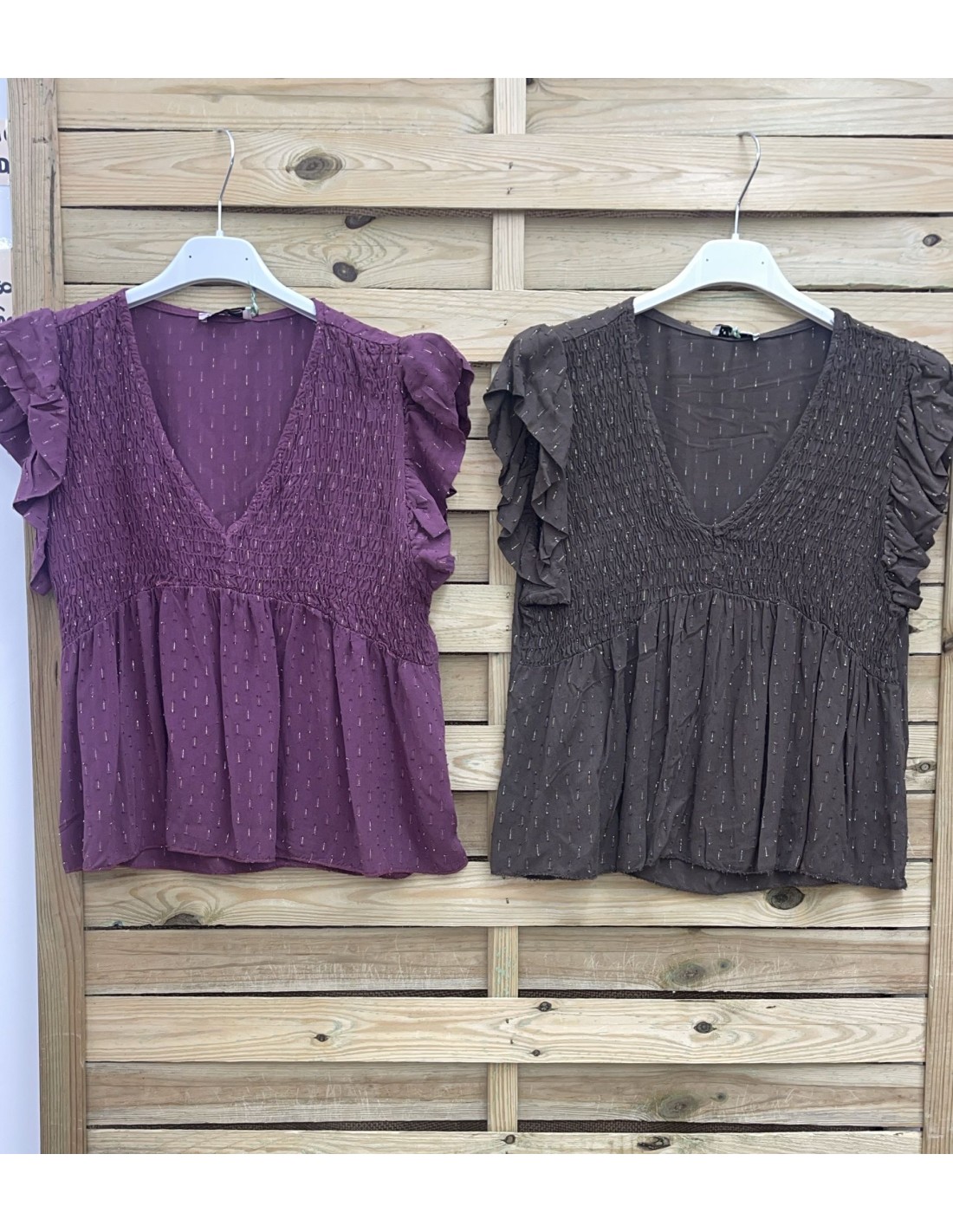 Camisa hilitos plata de sisa con pico y pecho fruncido