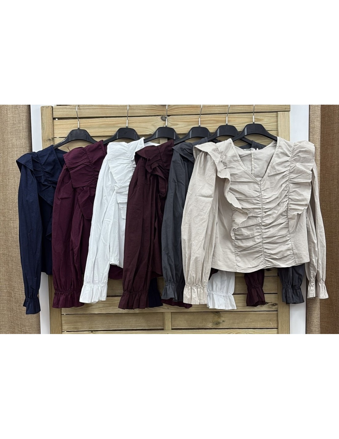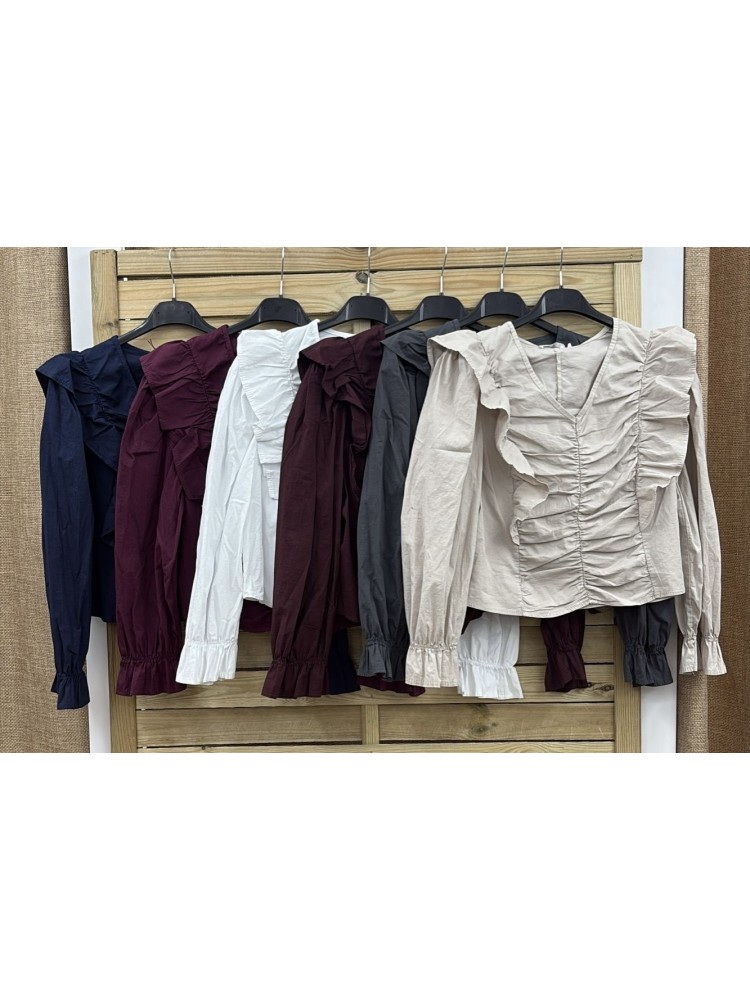 Camisa de manga larga con parte delantera fruncida y capita en hombros