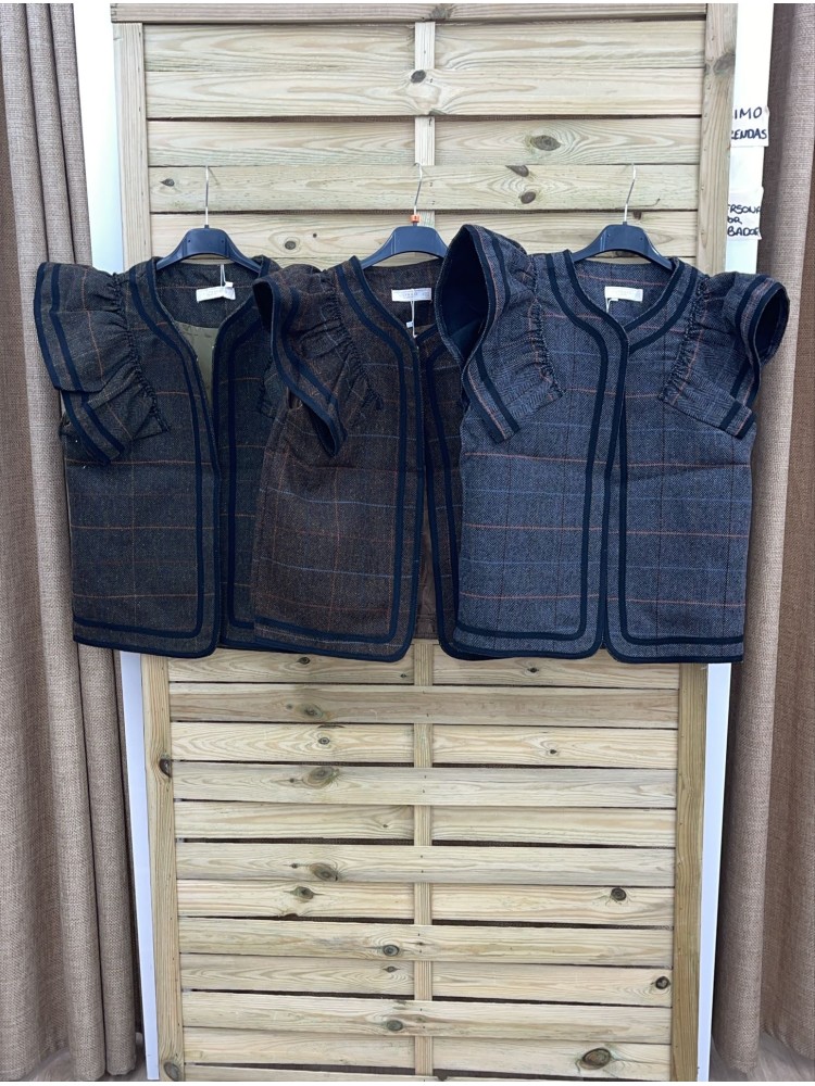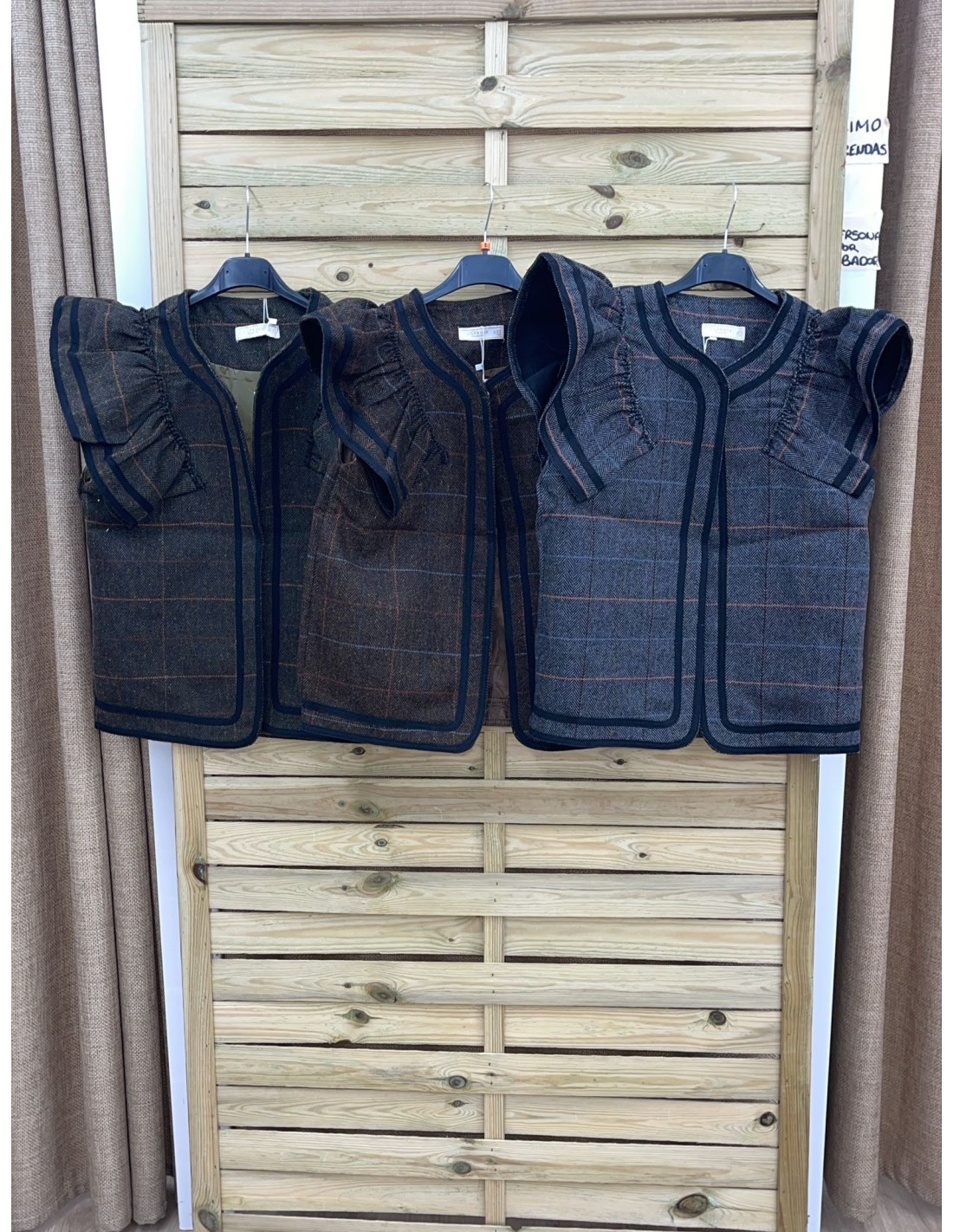 Chaleco de espigas y cuadros con doble volante y vivo negro
