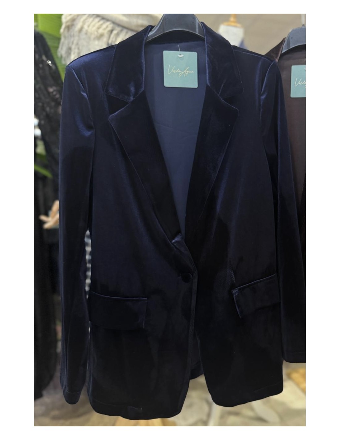 Blazer terciopelo con hombreras y boton delantero