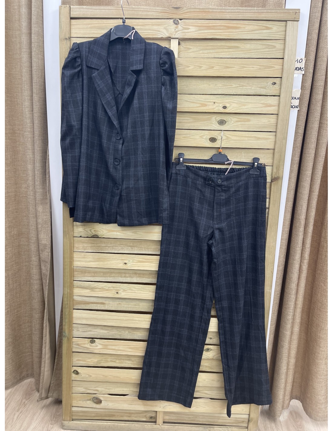 Chaqueta cuadros Leti con frunce en hombros y cinturon
