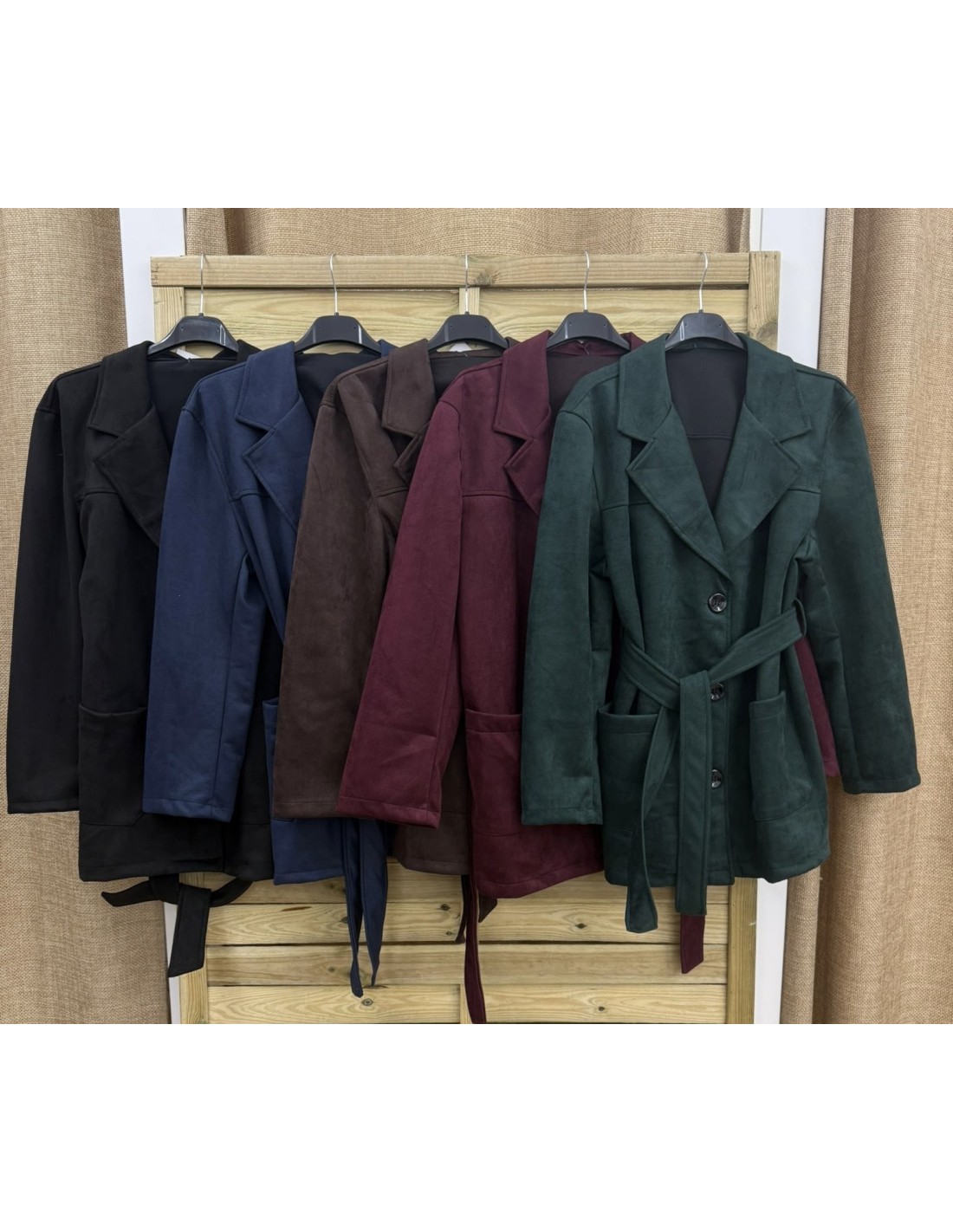 Chaqueta efecto ante con cinturón