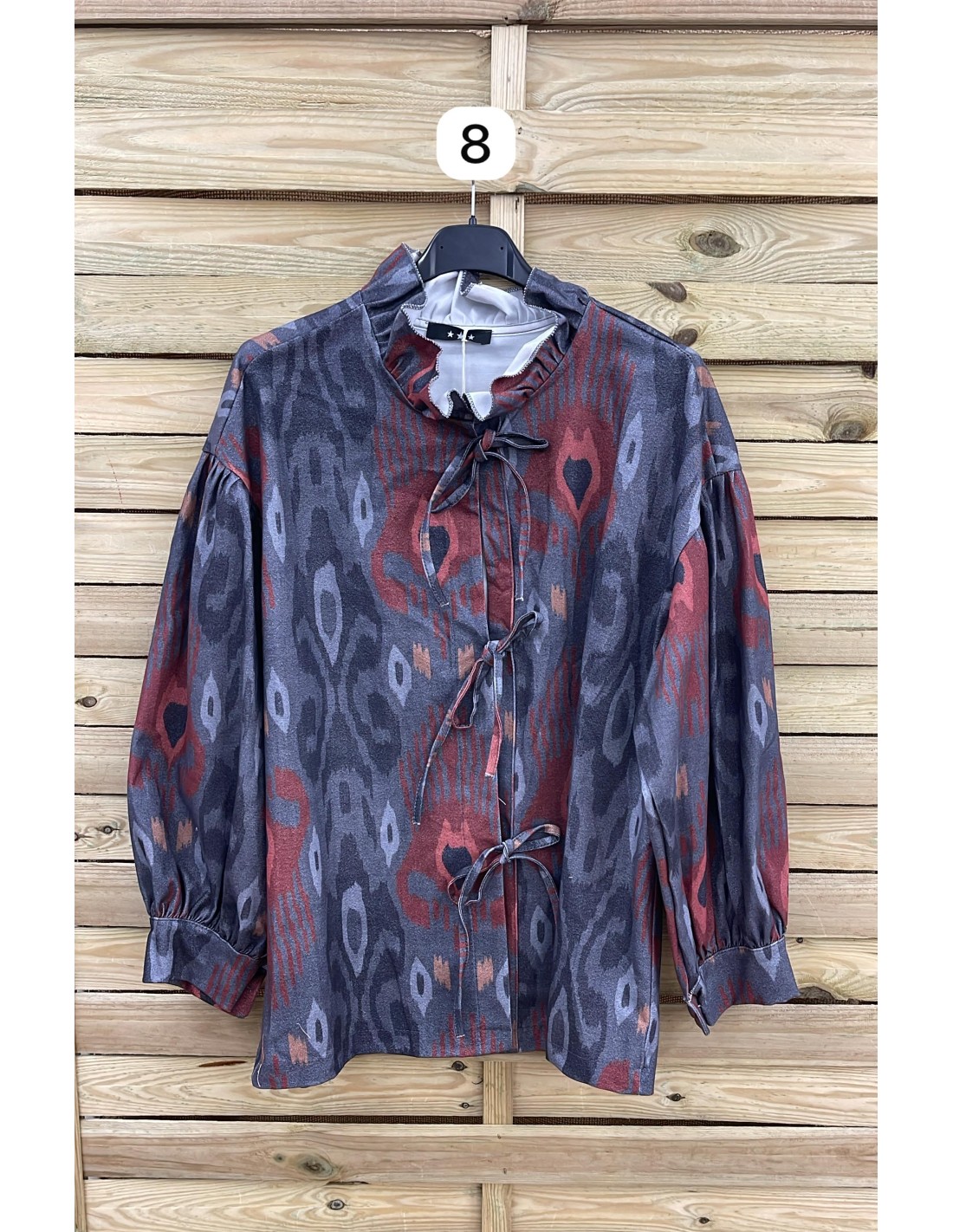 Chaqueta estampada con volante en cuello y lazadas