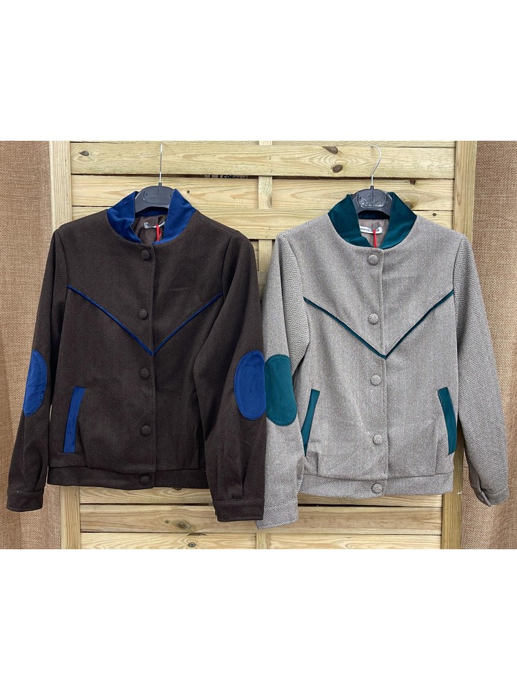 Bomber de espigas con vivos y coderas en terciopelo
