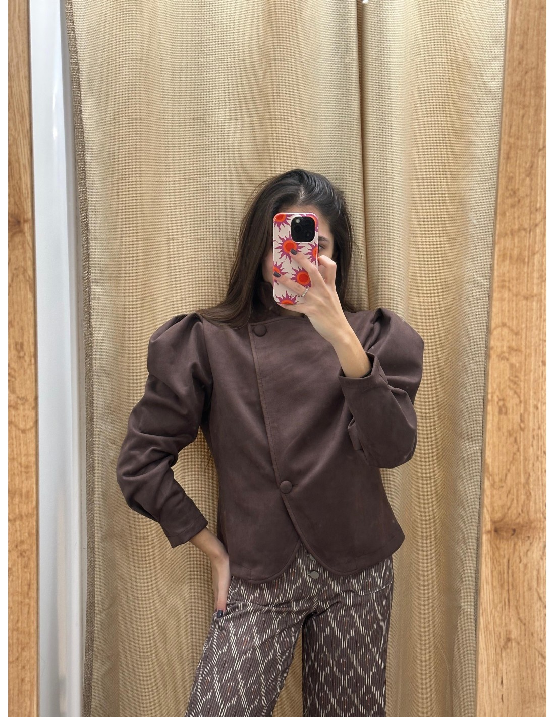Chaqueta cruzada efecto ante con cuello en hombros