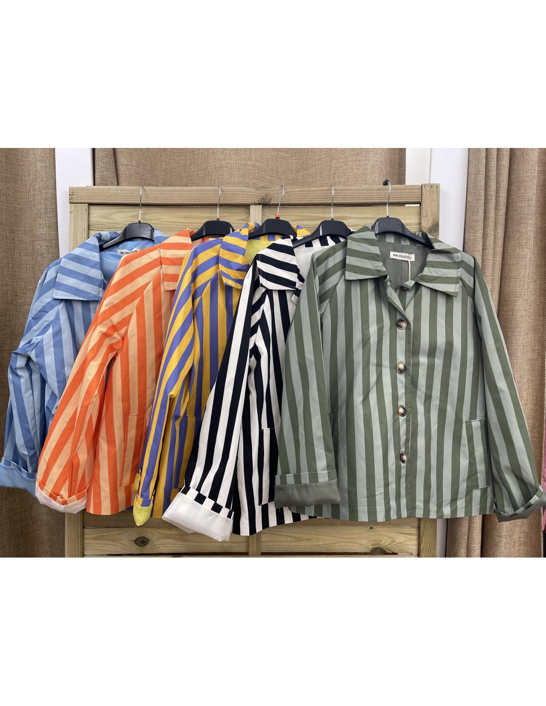 Chaqueta efecto impermeable corta de rayas