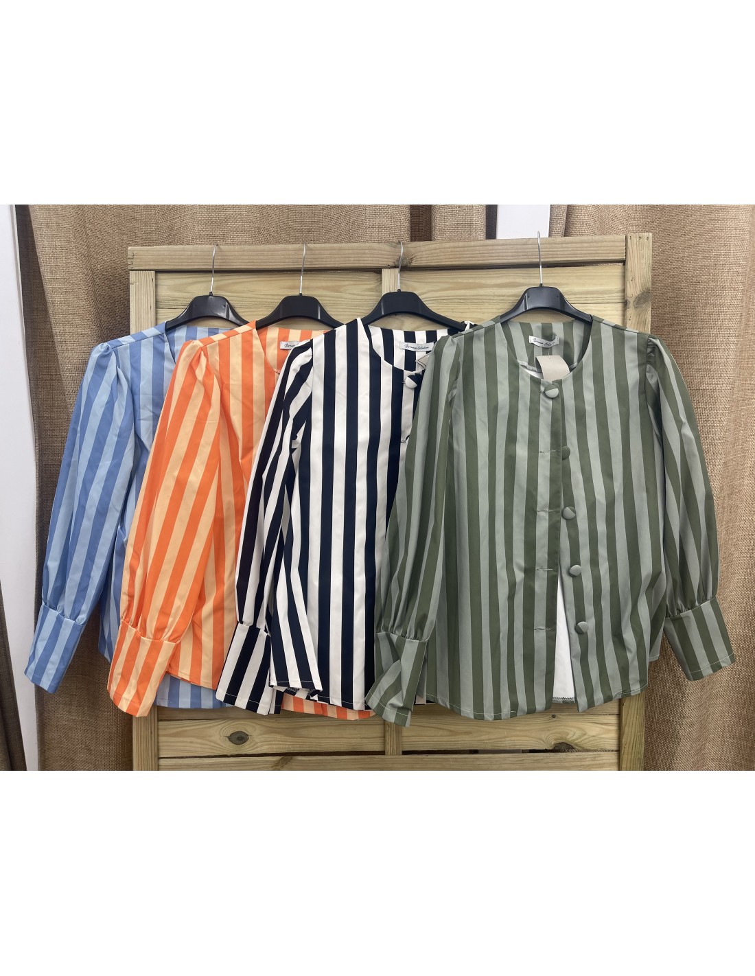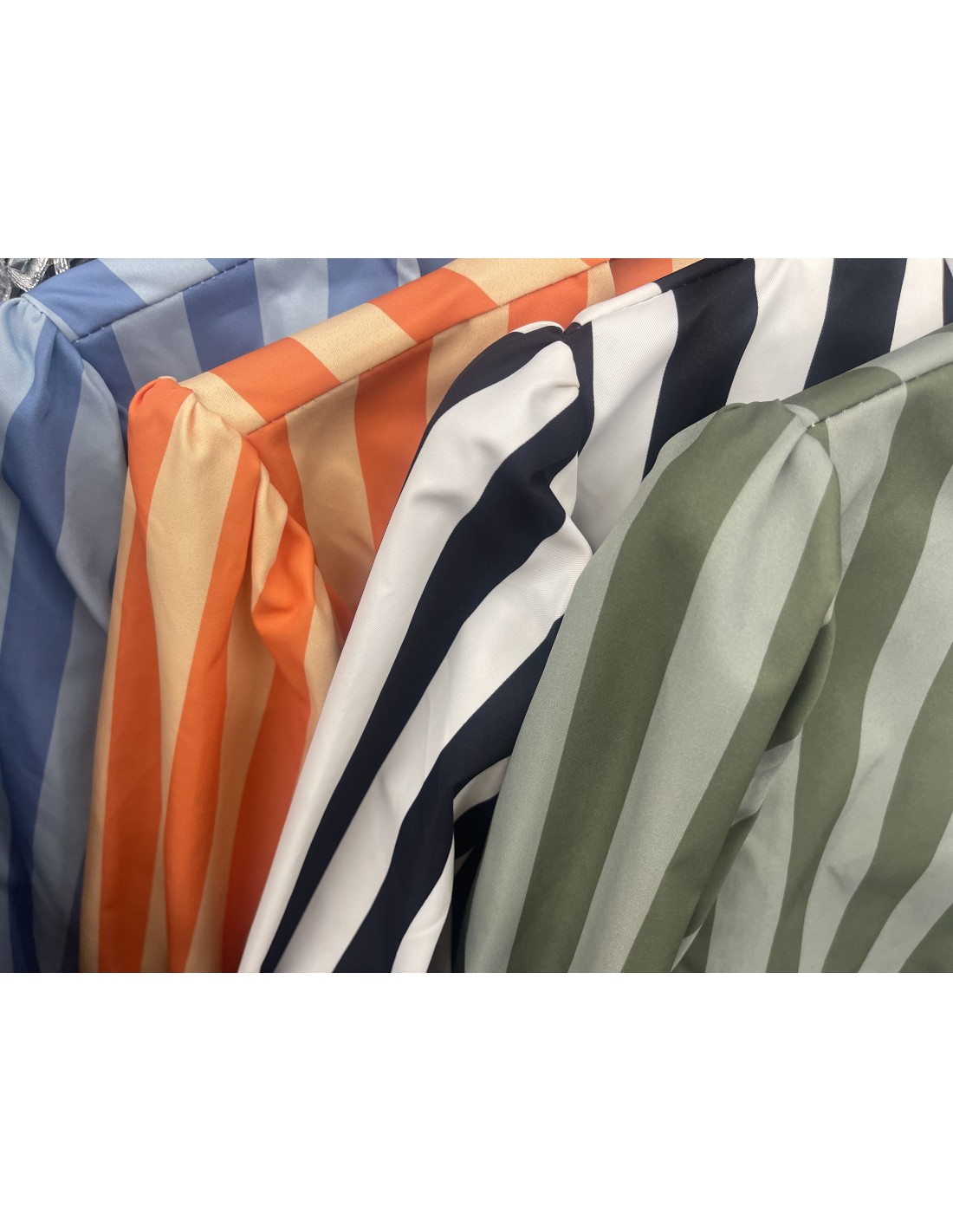 Chaqueta efecto impermeable de rayas con vuelo en hombros