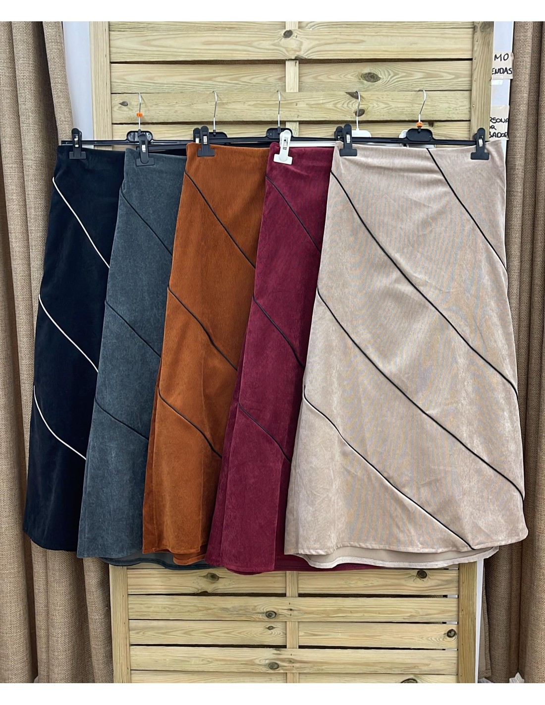 Falda de micropana evasé con vivos diagonales