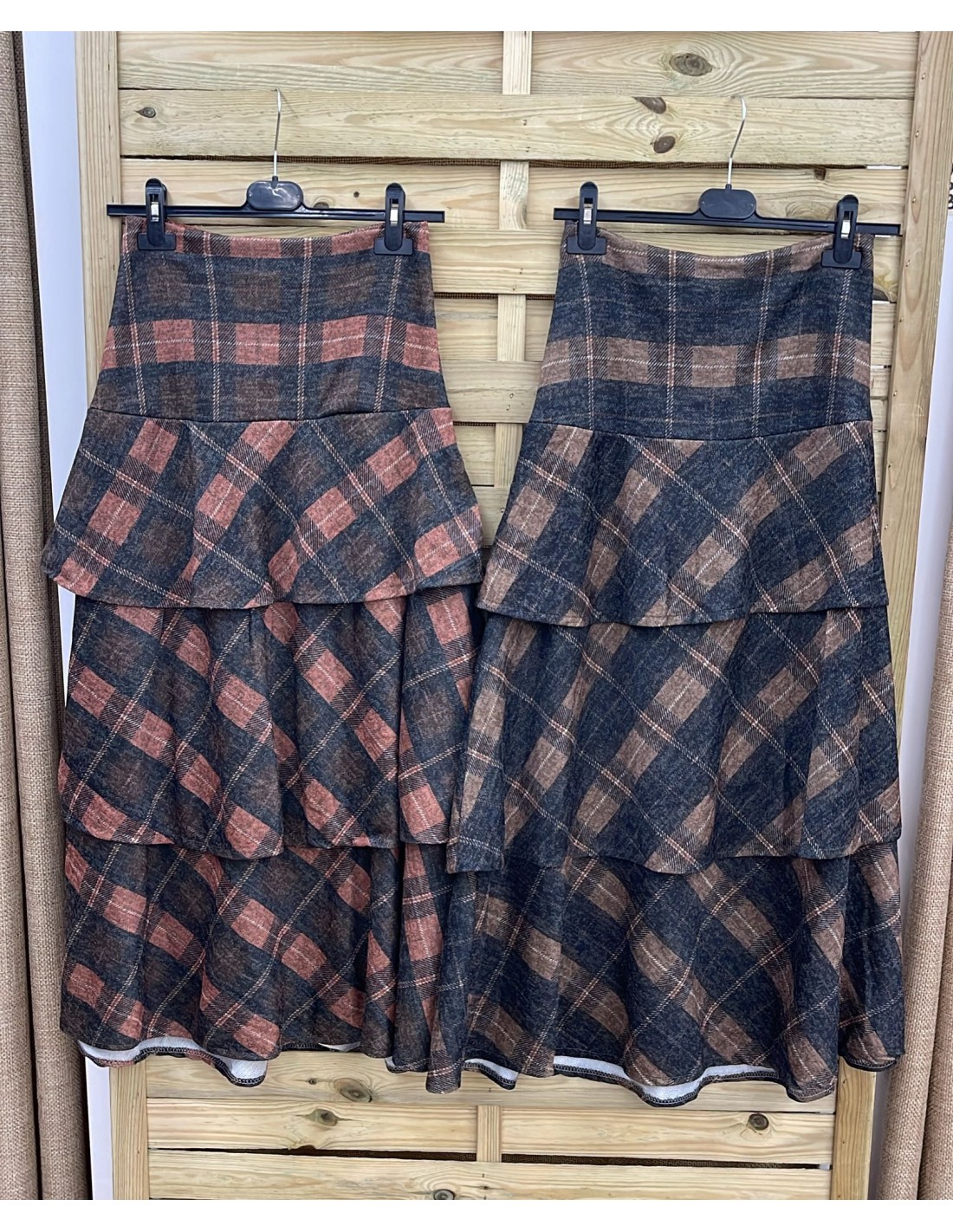 Falda de cuadros con triple capa