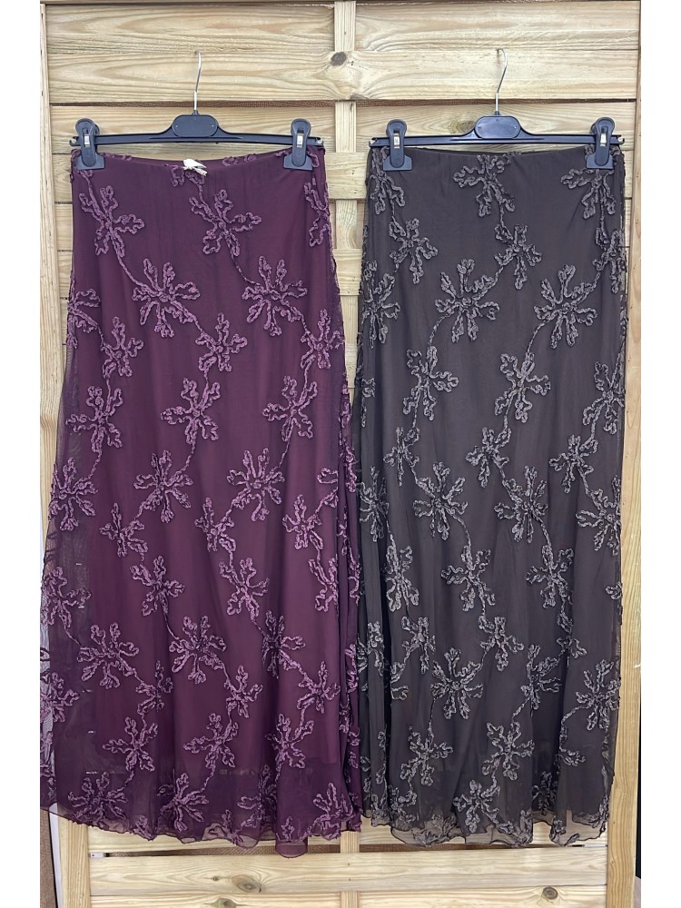 Falda midi tul con flores de terciopelo