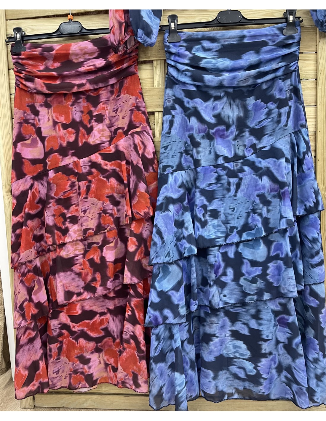 Falda Vera de flores con fajín y triple volante