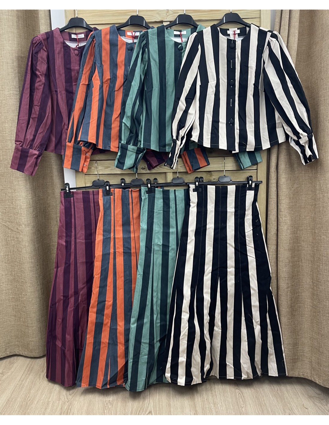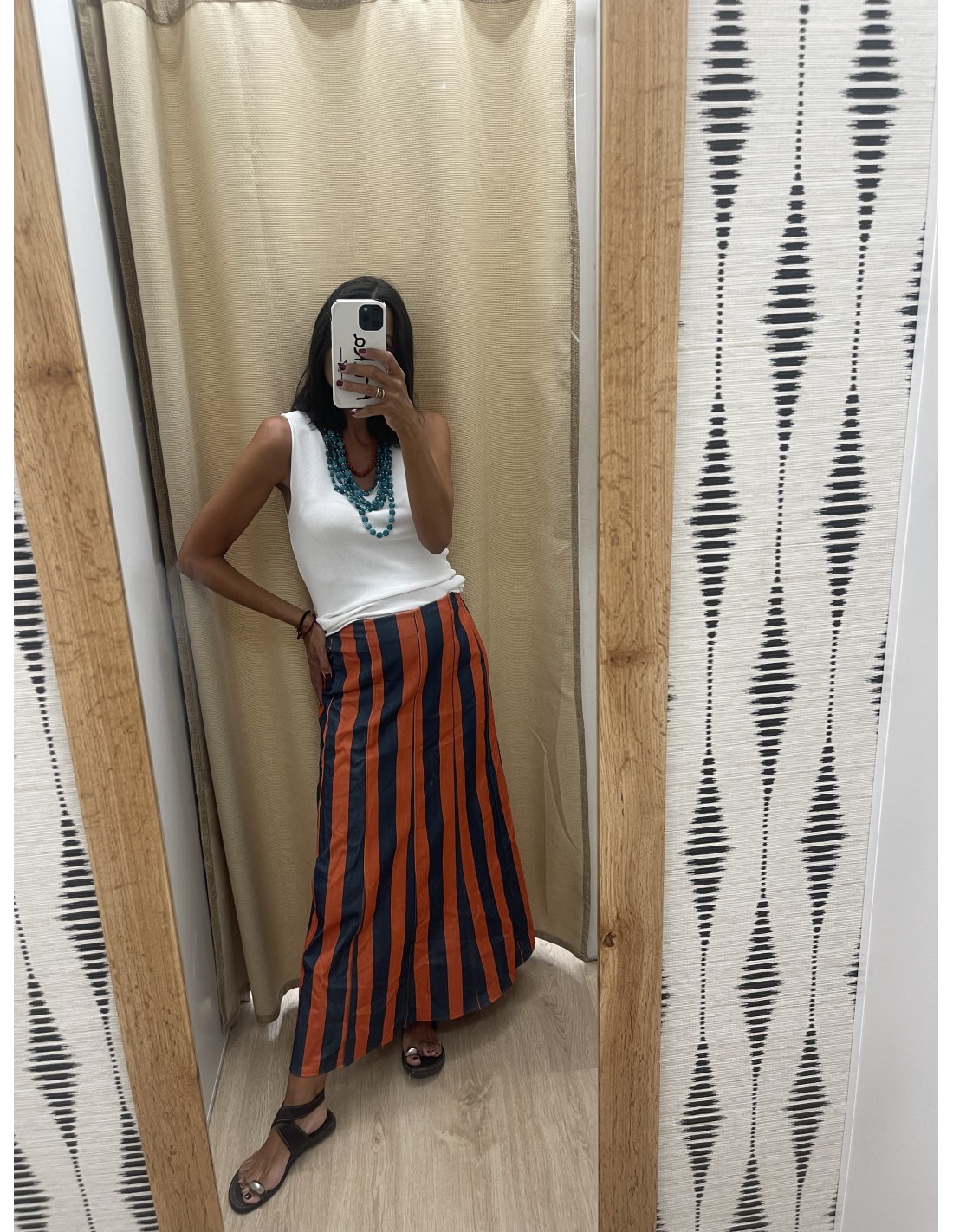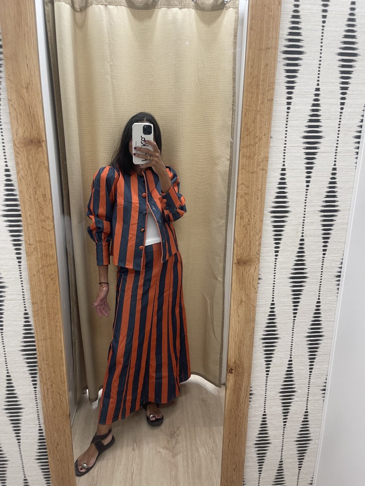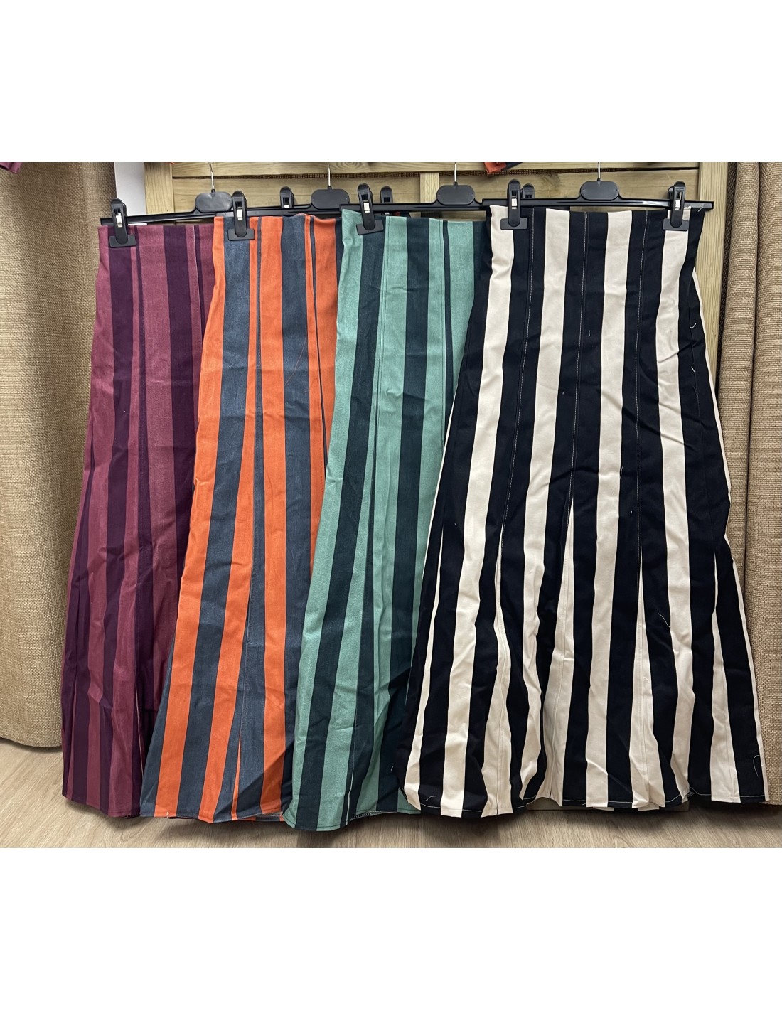Falda evasé bicolor de raya media vertical