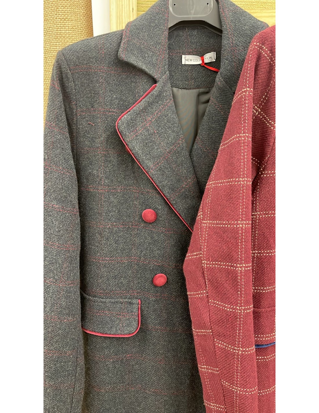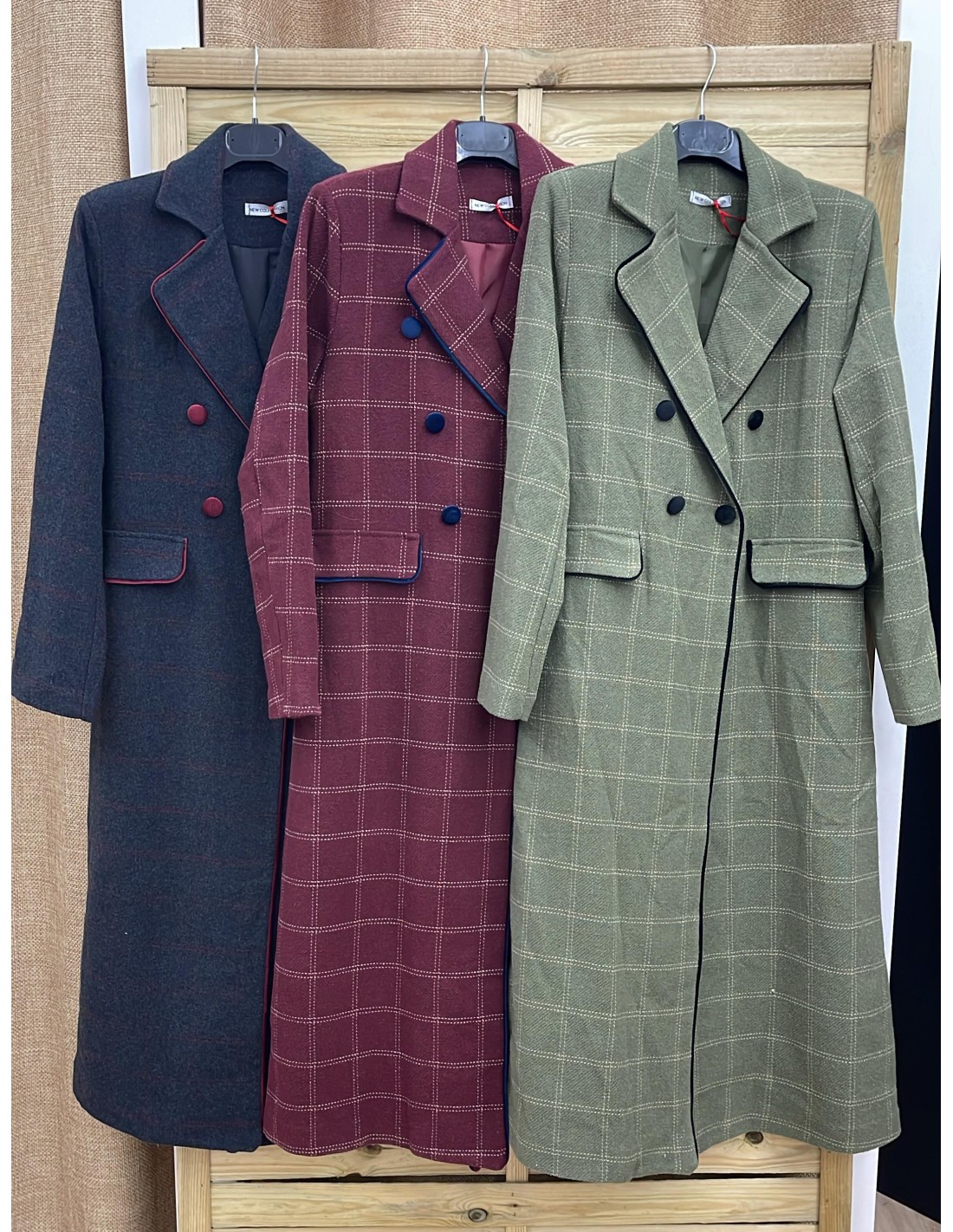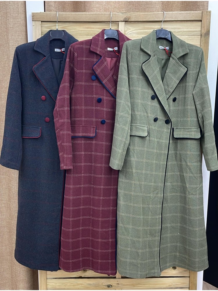 Abrigo largo Lucia de cuadros con vivo