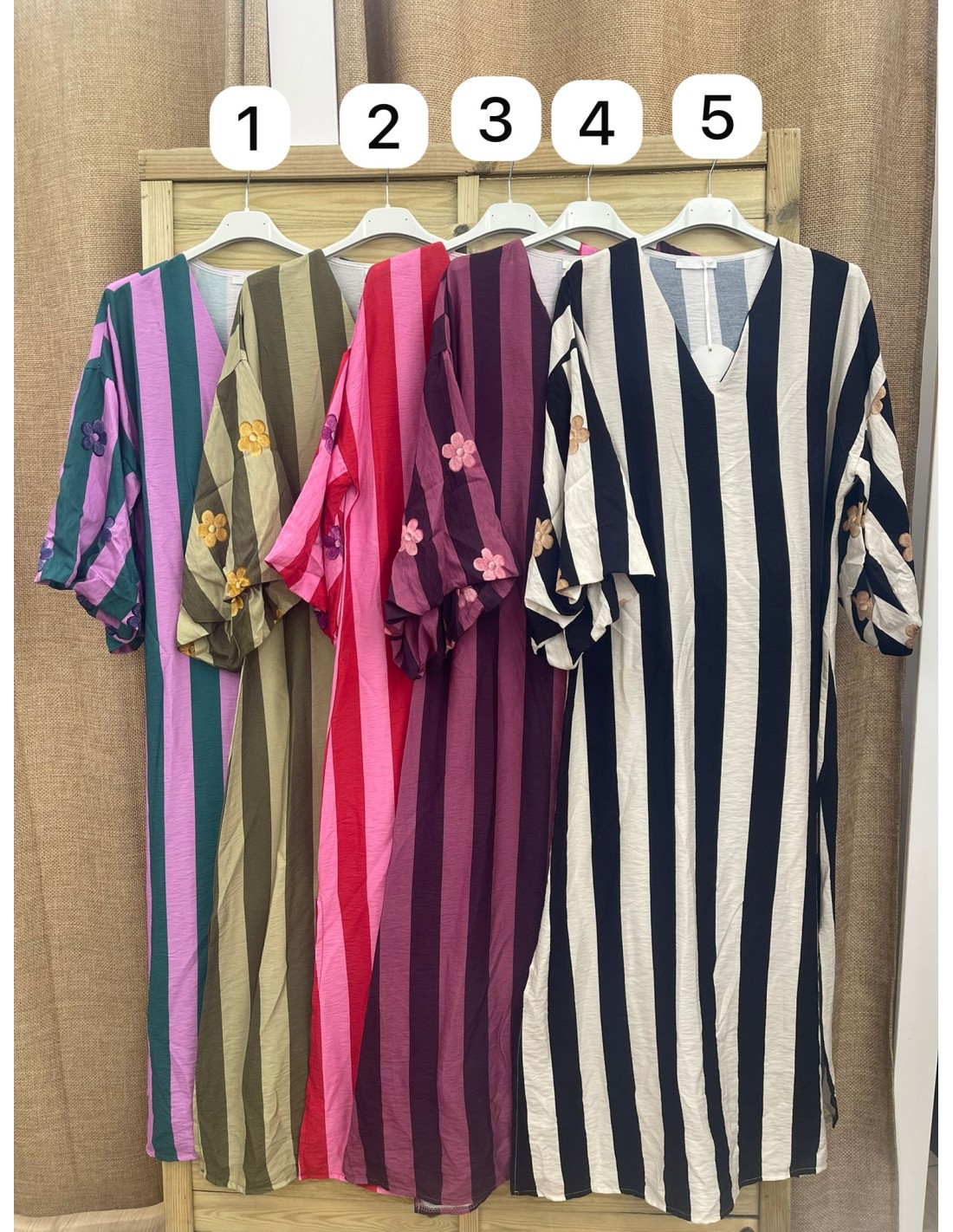 Vestido camisero de rayas con florecitas en mangas