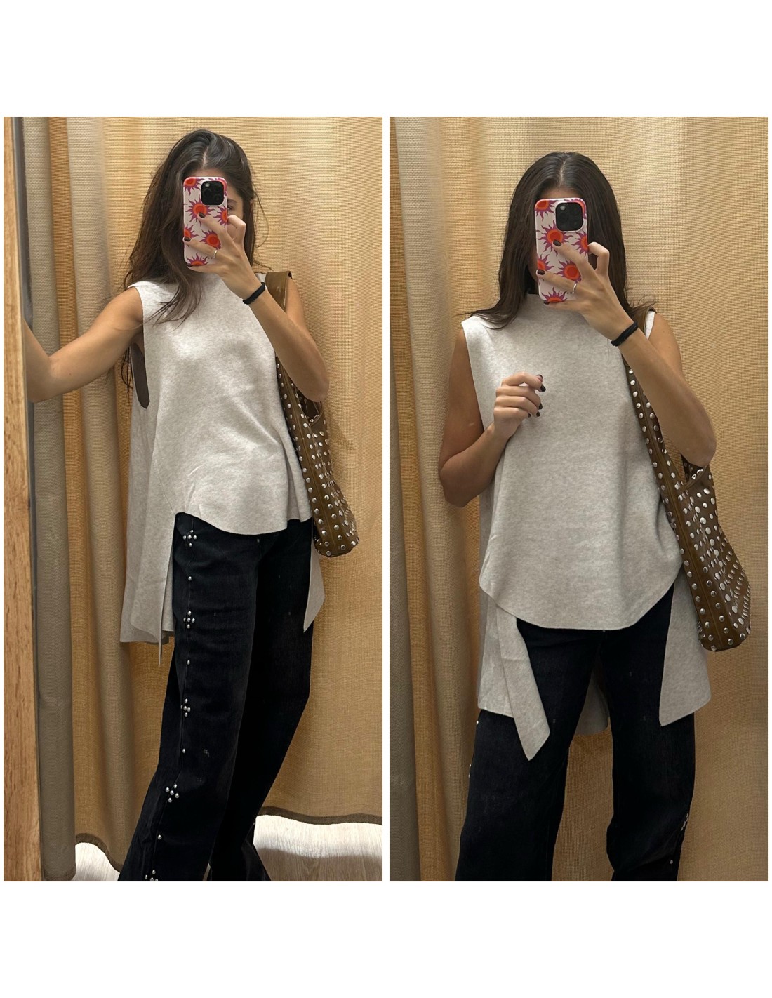 Jeans negros con cruces laterales de tachas plata