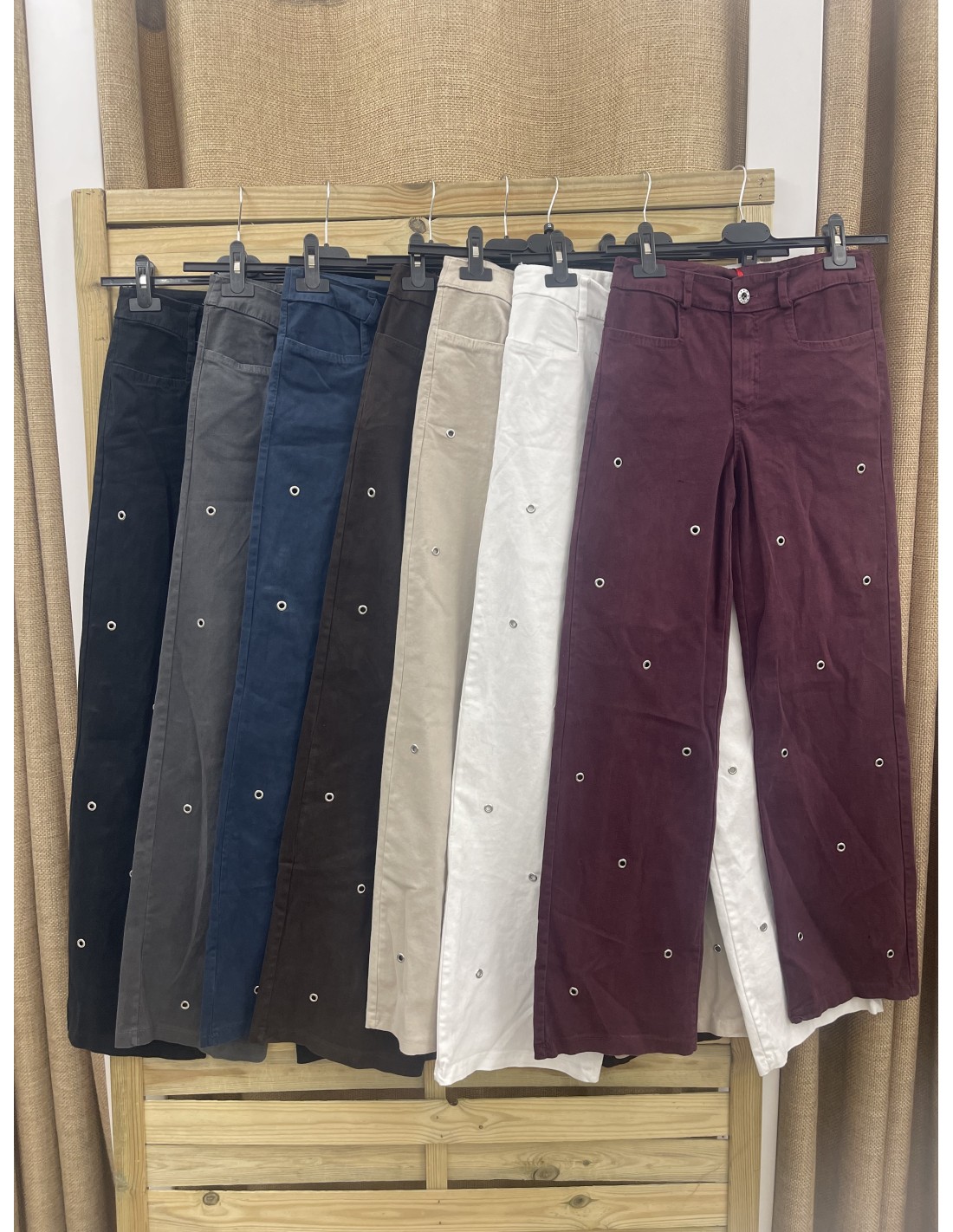 Jeans mini arandelas en parte delantera