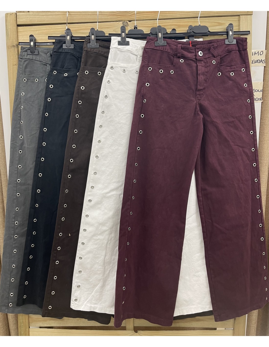 Pantalon mini arandelas laterales y en bolsillos