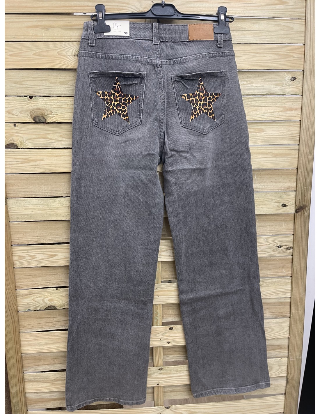 Jeans gris con estrellas print en bolsillos traseros