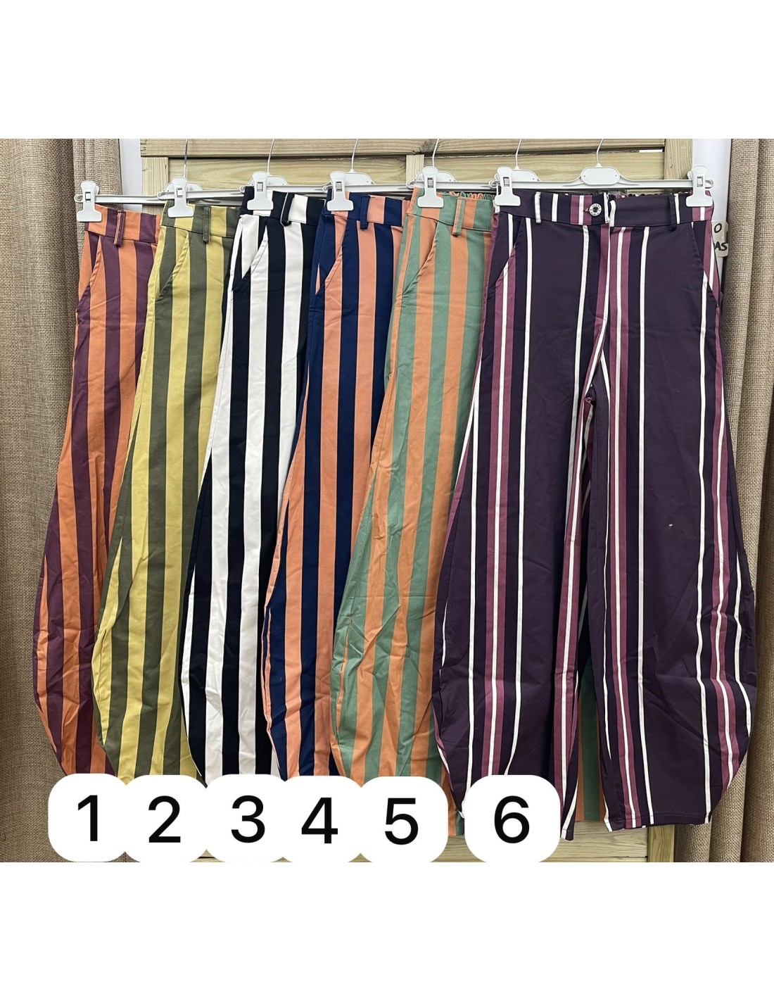 Pantalon barrel de rayas verticales de colores