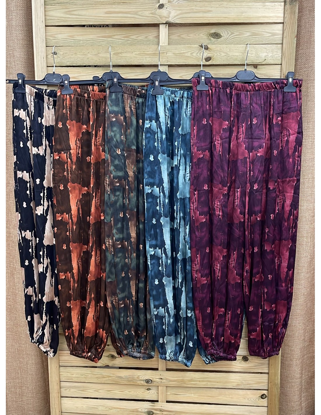 Pantalon saten bombacho de manchas