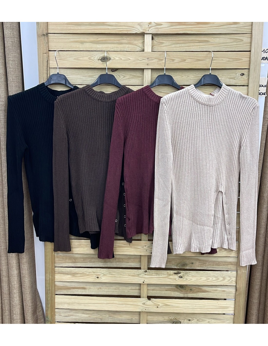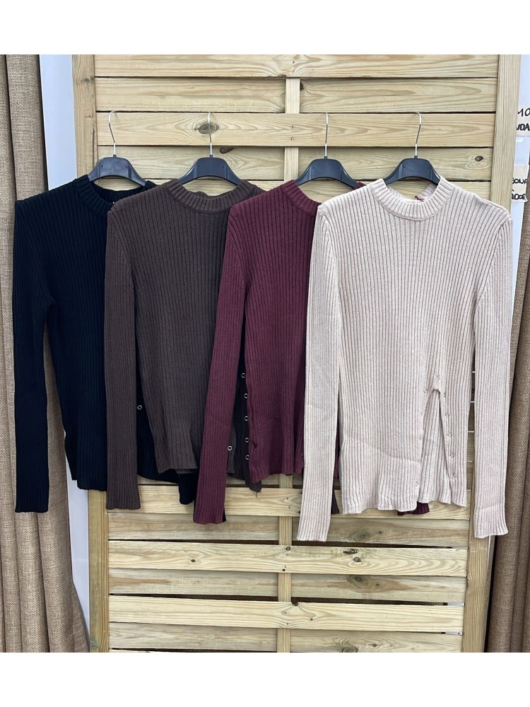 Jersey canalé con abertura con mini arandelas