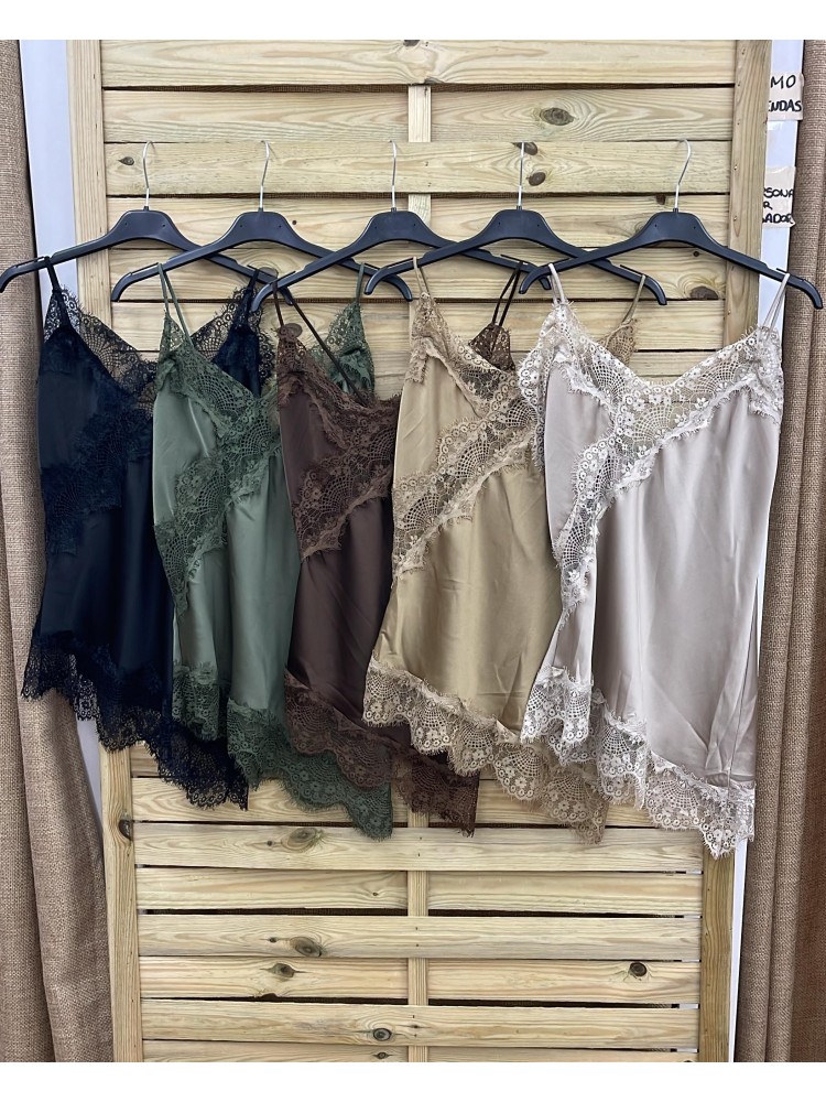 Top lencero asimetrico con encaje diagonal