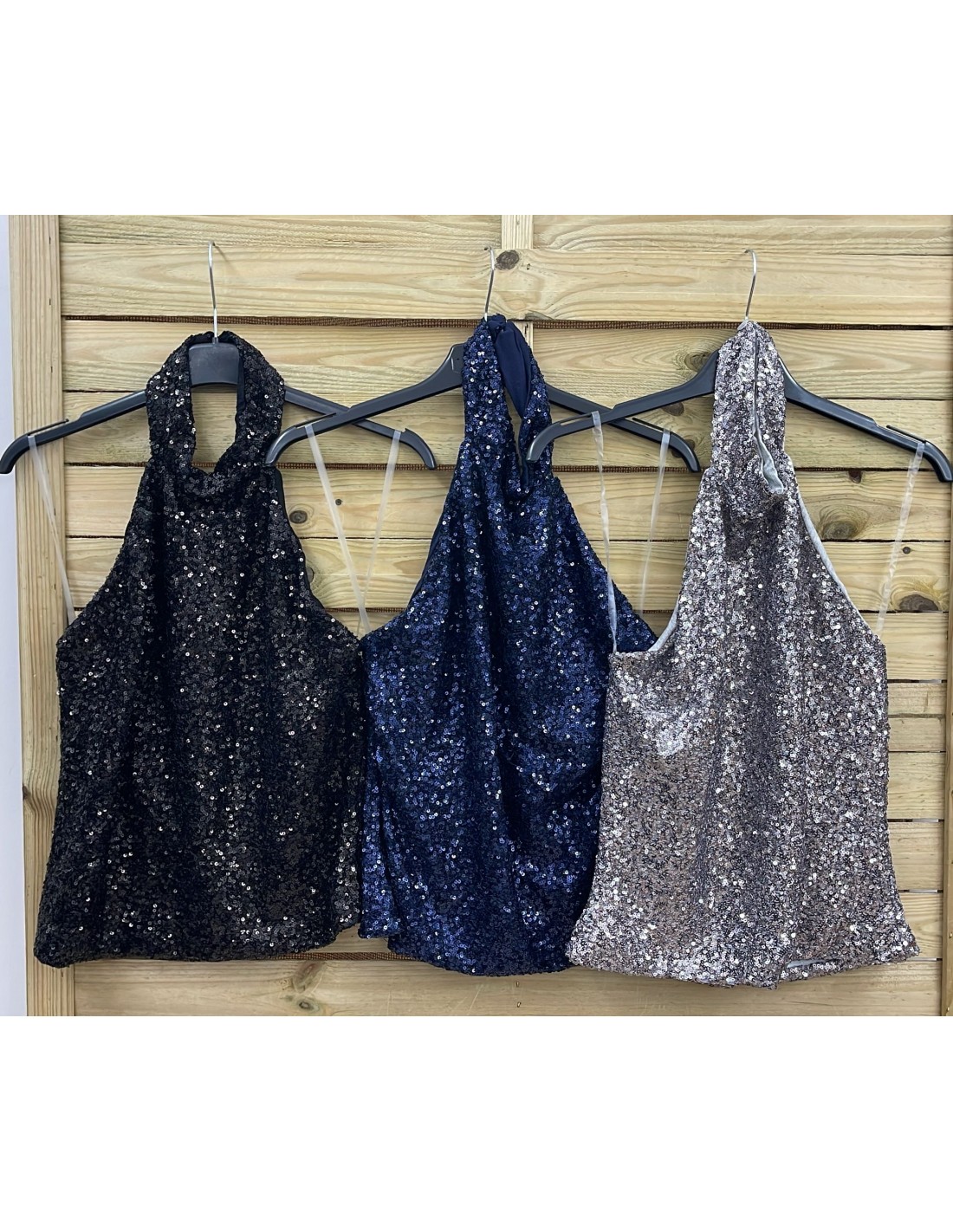 Top halter lentejuelas con espalda descubierta