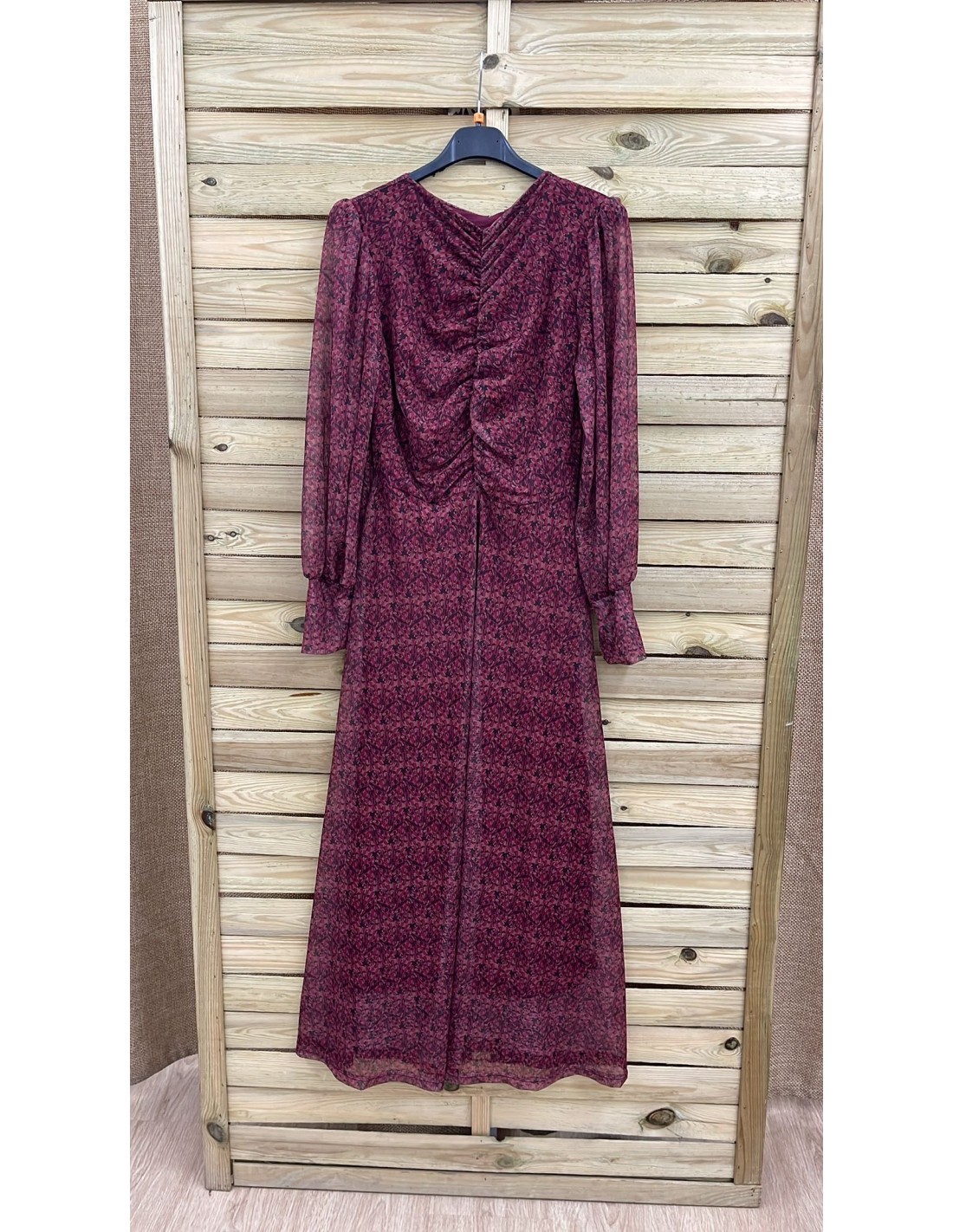 Vestido de tul con frunce vertical en pecho