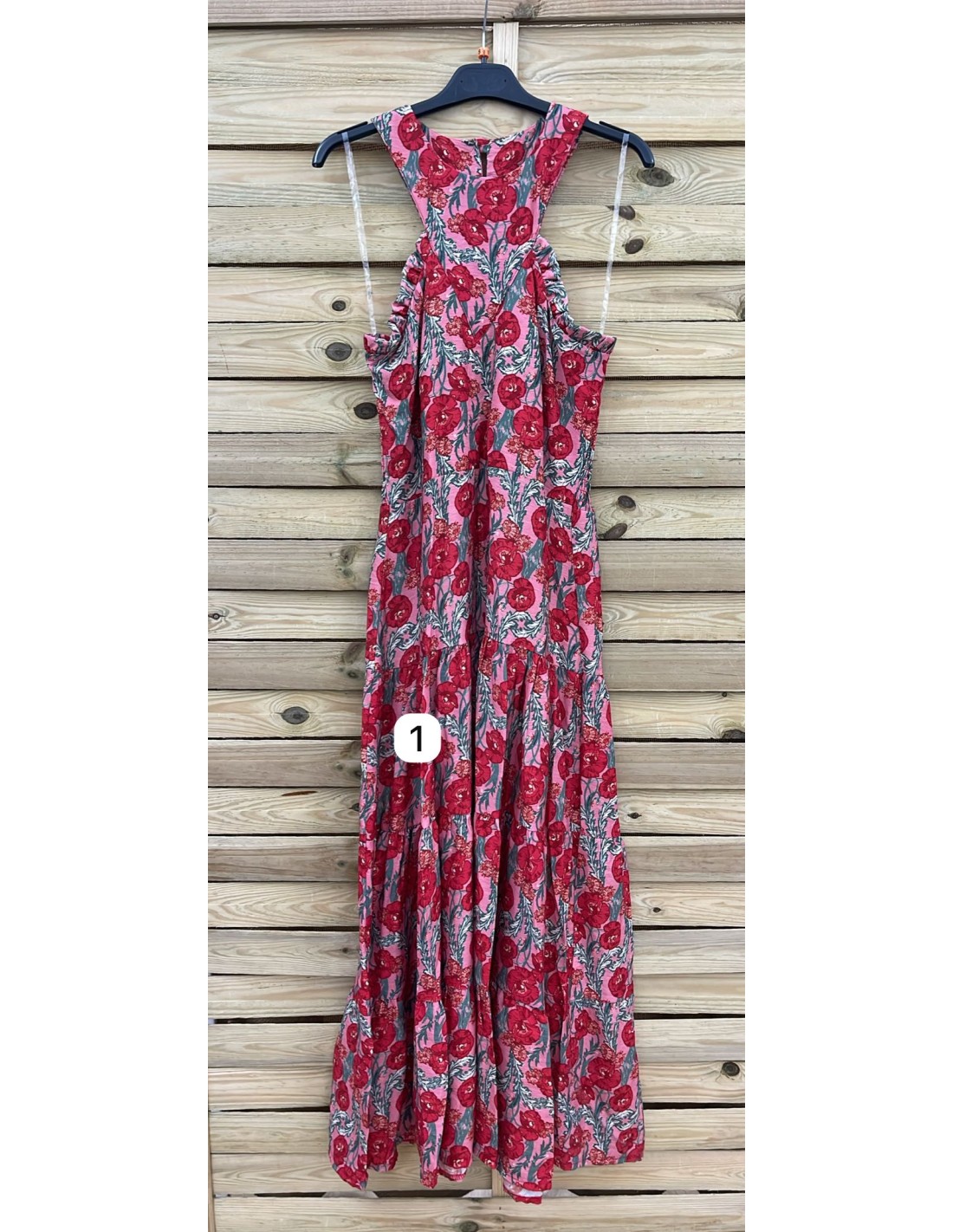 Vestido largo de flores con escote halter con volantito