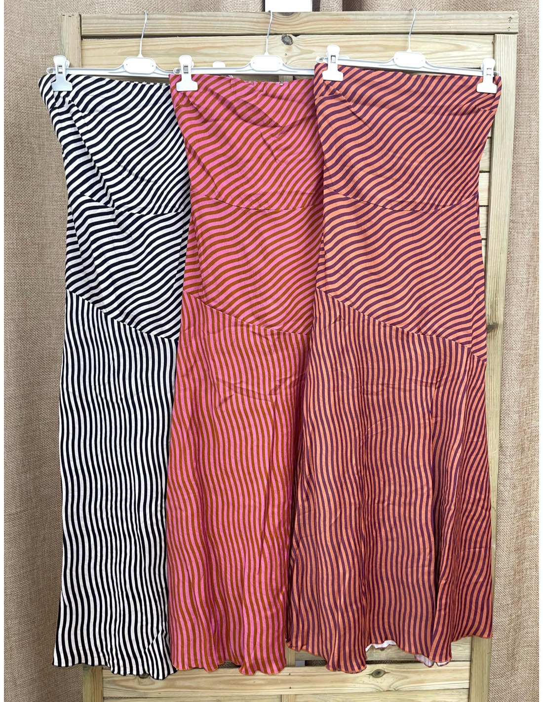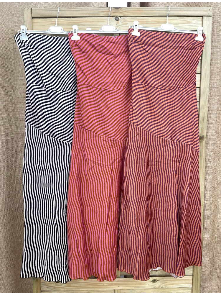 Vestido palabra de rayitas y doble corte con frunce trasero