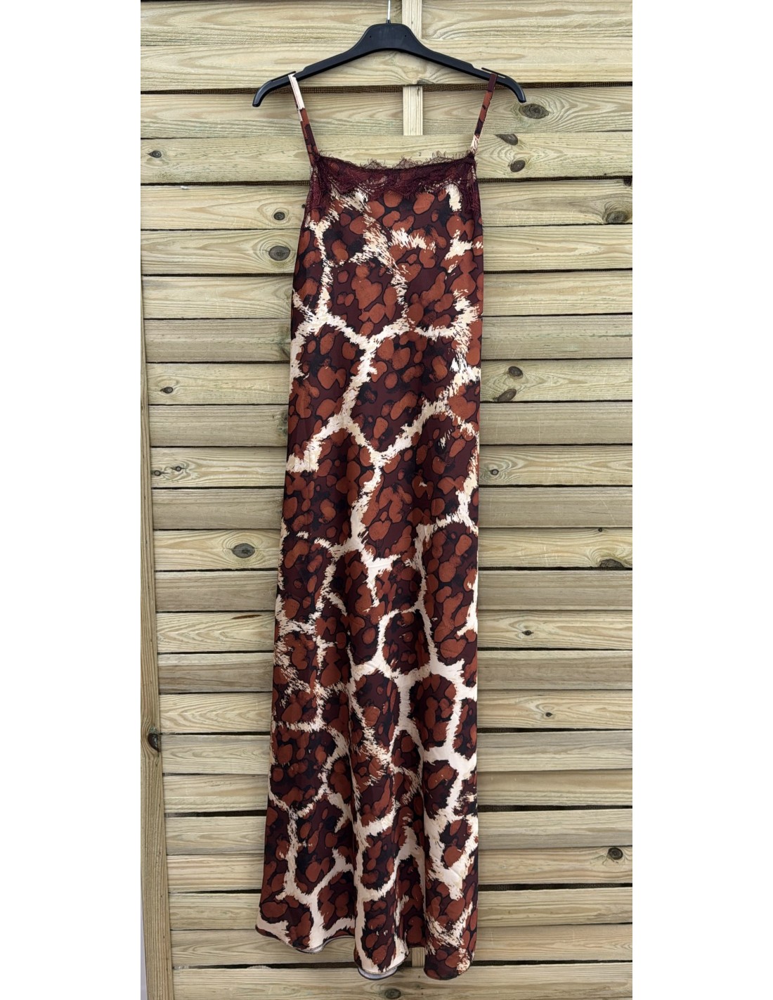 Vestido largo lencero de manchas con puntilla en escote